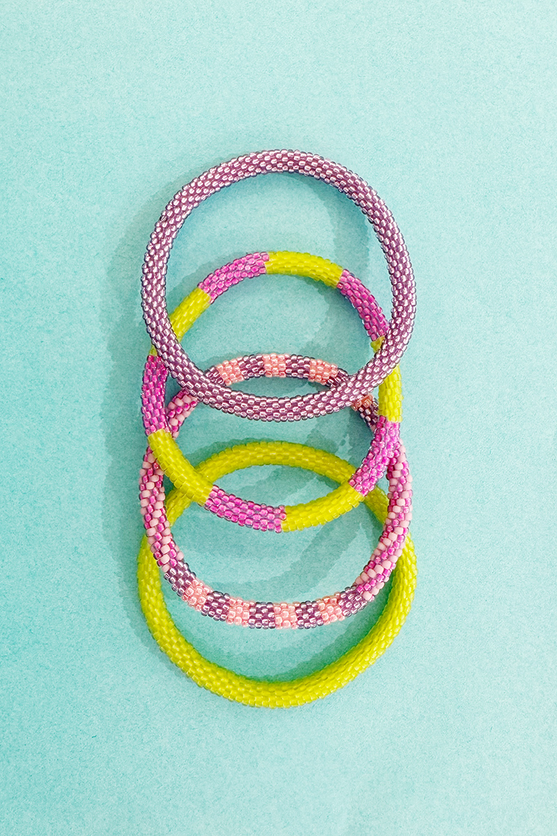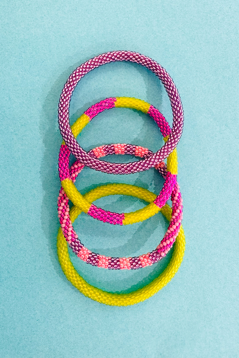 Dieser farbenfrohe Schmuck, designt von Felix Doll, wird aus hochwertigen japanischen Glasperlen in Handarbeit von einer Frauenkooperation in Nepal hergestellt. Felix reist jedes Jahr nach Kathmandu, so entstehen fair und nachhaltig produzierte, einzigartige Schmuckstücke.