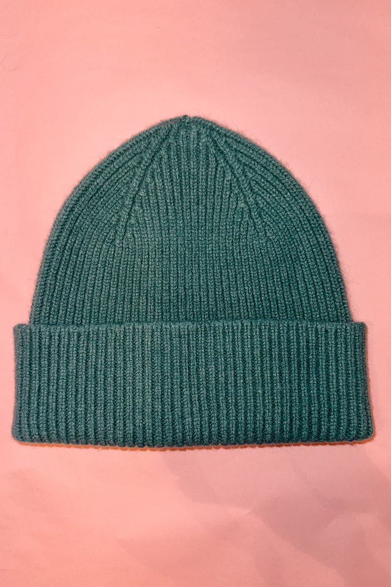 Beanie "Barra" Grüntöne aus Merino- und Angorawolle, von Mackie aus Schottland.