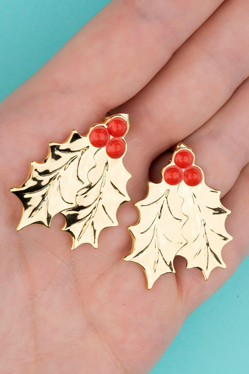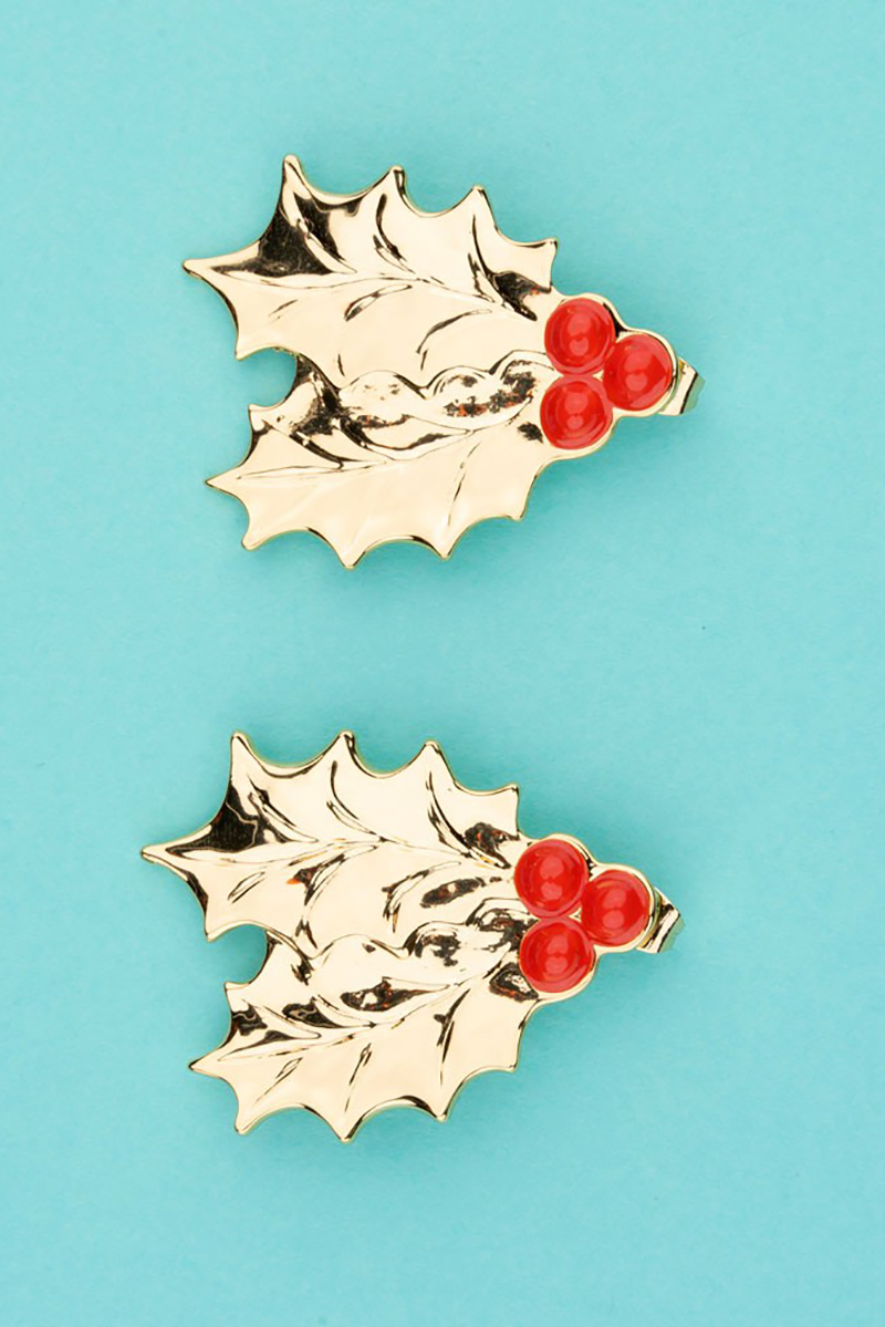 Ohrstecker "Stechpalme mit Beeren" von coucou suzette aus Frankreich.