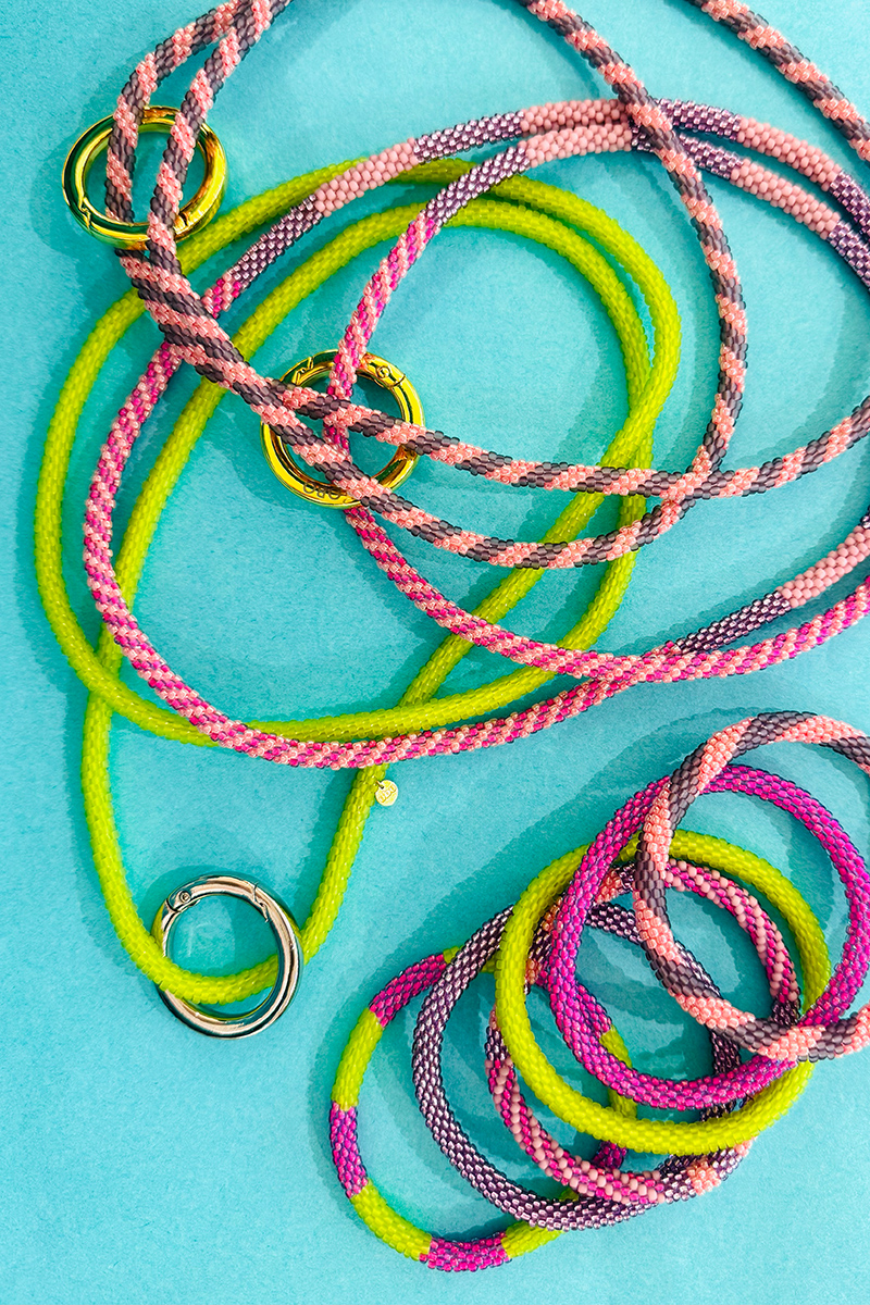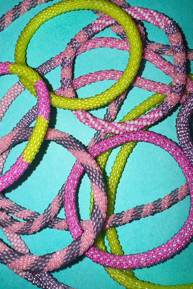 Dieser farbenfrohe Schmuck, designt von Felix Doll, wird aus hochwertigen japanischen Glasperlen in Handarbeit von einer Frauenkooperation in Nepal hergestellt. Felix reist jedes Jahr nach Kathmandu, so entstehen fair und nachhaltig produzierte, einzigartige Schmuckstücke.