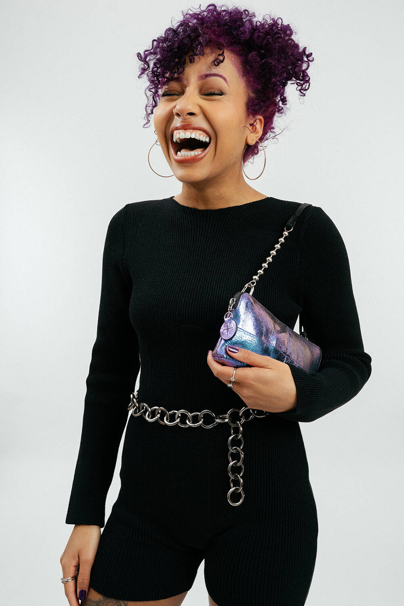 Der abnehmbare Kugelkettenriemen verleiht dem sonst reduzierten Design das gewisse Etwas und dient auch als Schlüsselband.