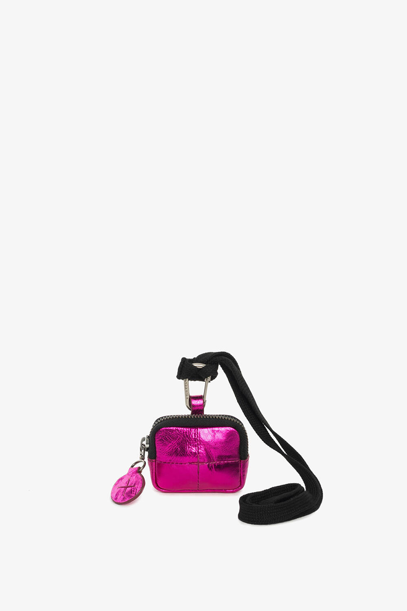 Tragvarianten: Als Neck Pouch um den Hals, am Handgelenk, als Bag Charm an einer INA KENT-Tasche oder an der Gürtelschlaufe.