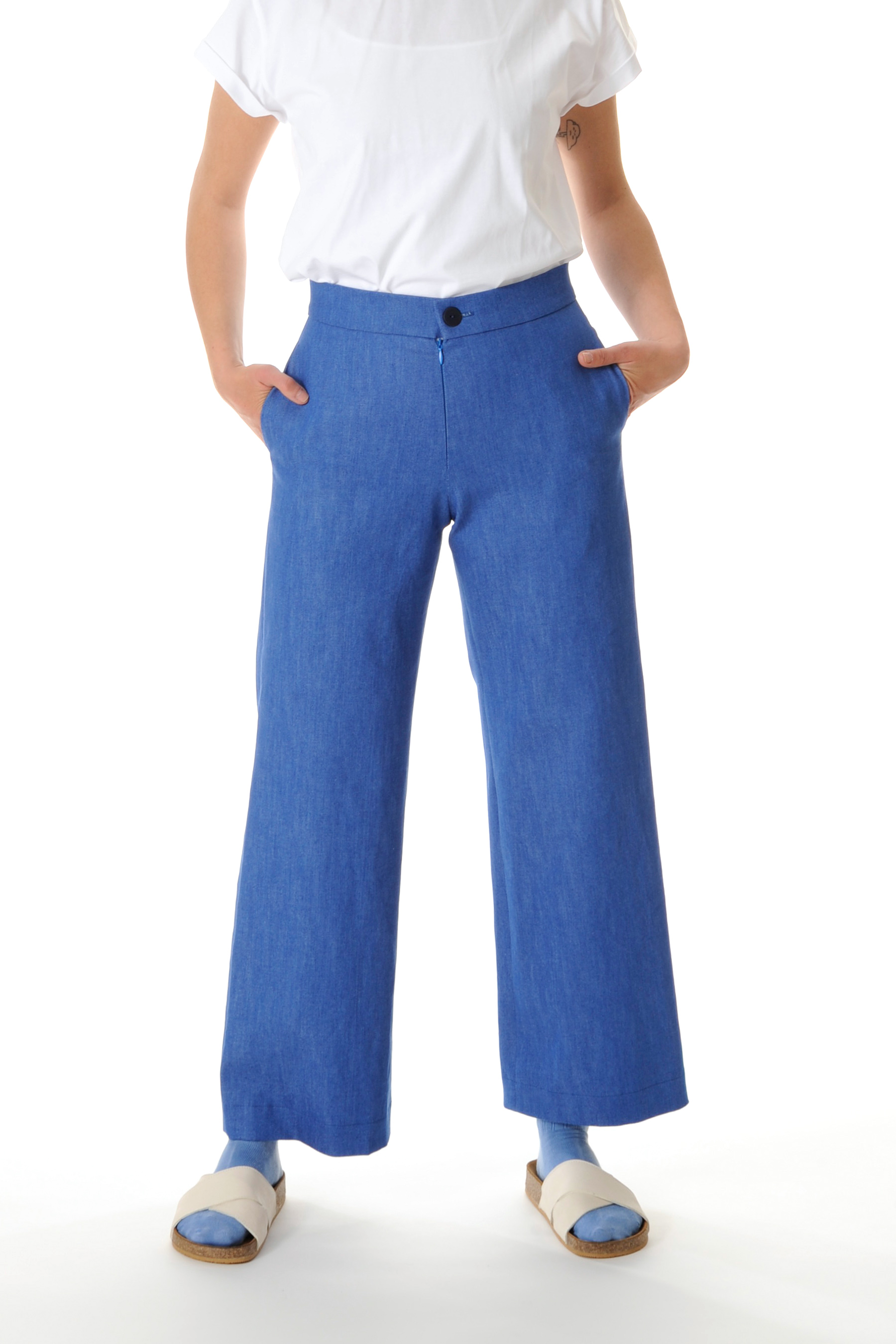 Endlich eine eigene Culotte! Unsere Gianna sitzt hoch, hat weite Beine und ist nicht ganz lang. Seitlich sind wunderschön zwei unsichtbare Taschen eingearbeitet. Sie wird mit einem nahtverdeckten Reissverschluss und einem Knopf vorne mittig geschlossen. Schlicht und für jeden Tag.