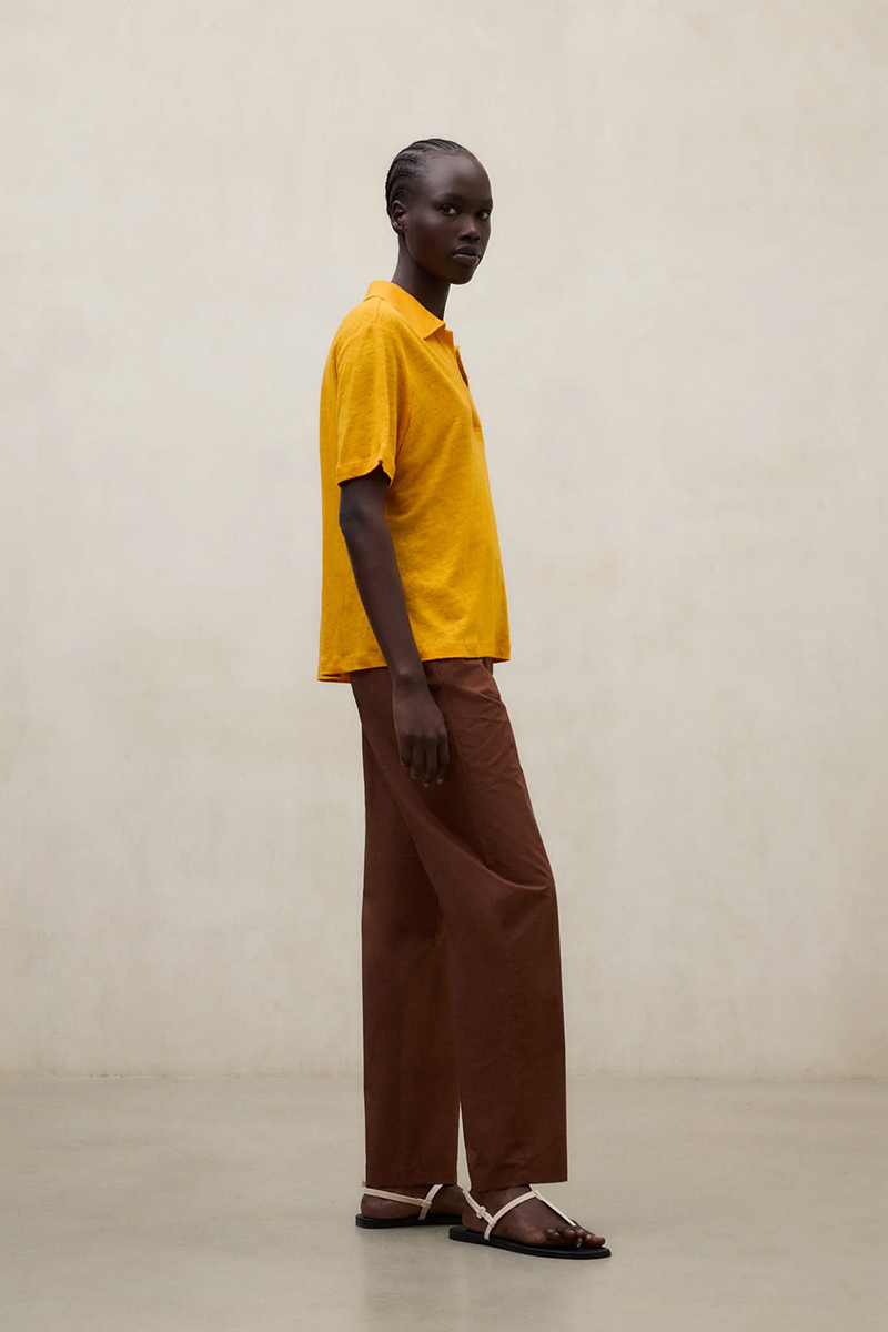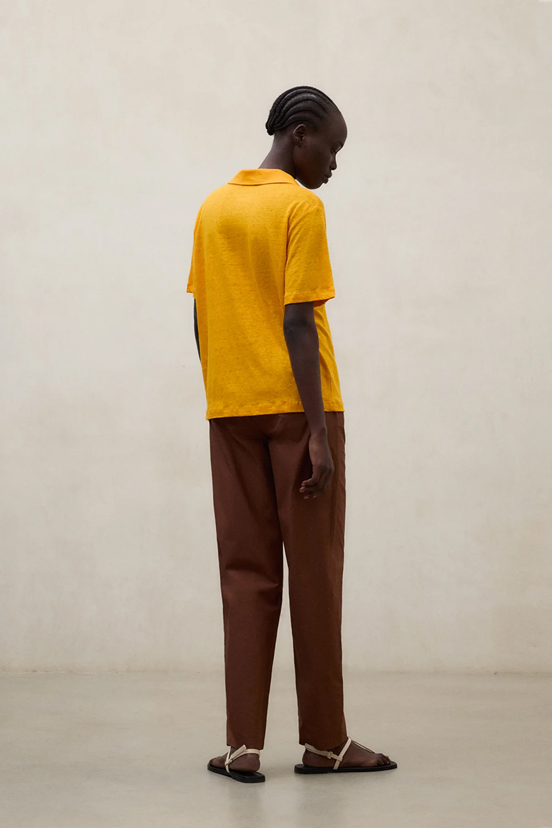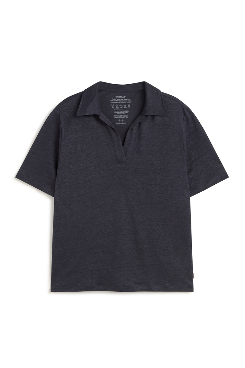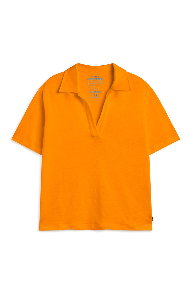 V-Ausschnitt Polo-Shirt aus leichtem Leinenstoff. Perfekt für warme Tage.