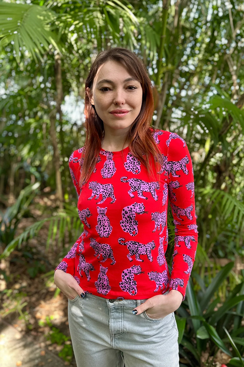 Anliegendes Langarm Shirt. Bequemes Basicstück mit wunderschönem Print.