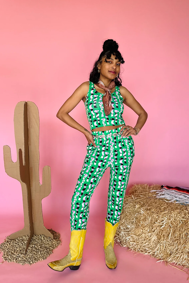 Nooworks ist ein frauengeführtes Label aus Kalifornien. Alle Stoffe werden mit Sujets von lokalen Künstler*innen in "limited editions" bedruckt und zu exklusiven Kleidungsstücken vernäht. All made in California.