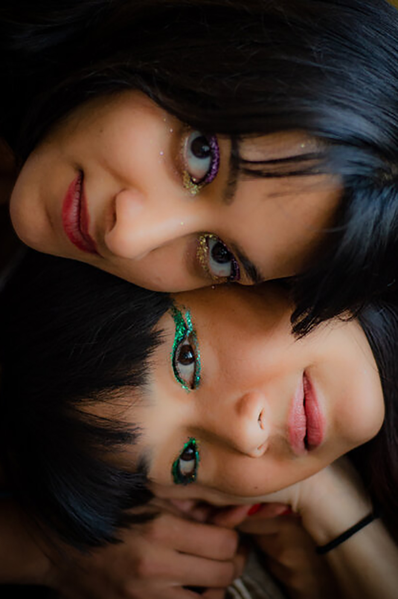 Idealerweise trägst du etwas vom pflanzlichen Glitter Glue auf, pinselst deinen Glitter drauf und lässt ihn 10 Sekunden trocknen, fertig.