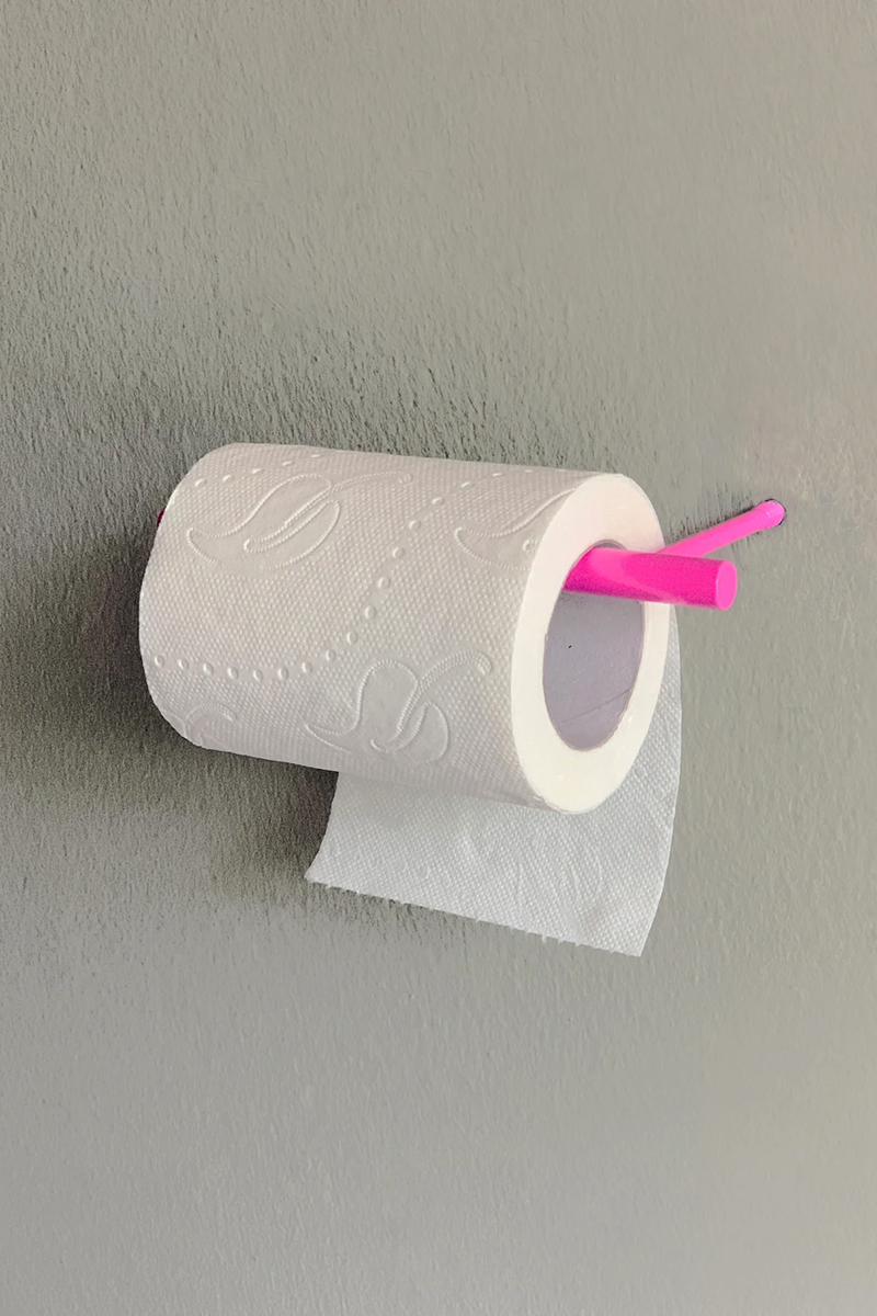 Der kolor Toilettenrollenhalter kommt in einem sehr reduzierten Design, ist „nur” ein farbiger Stahlstab mit Schraube. Er wurde entwickelt, um die Produktserie „line hooks“ zu erweitern. Zusammen mit den kolor Haken „line hooks“ oder „pin hooks“ lässt sich damit ein grafisches Bild oder ein Farbakzent in den oft so tristen Badezimmern setzen.