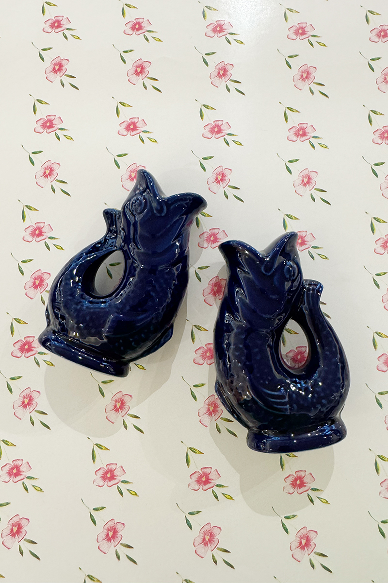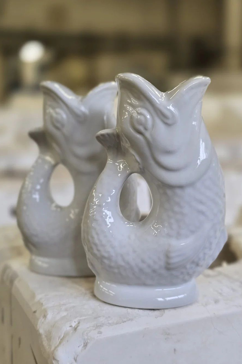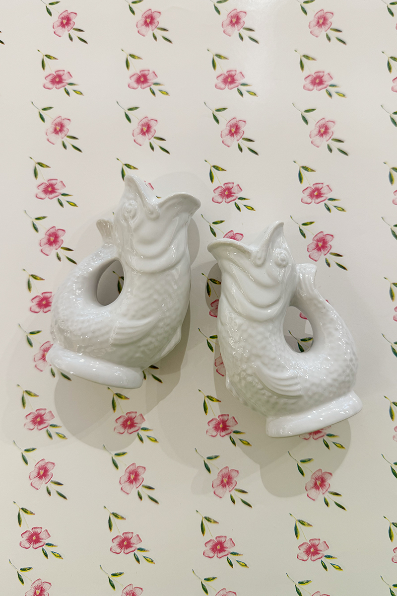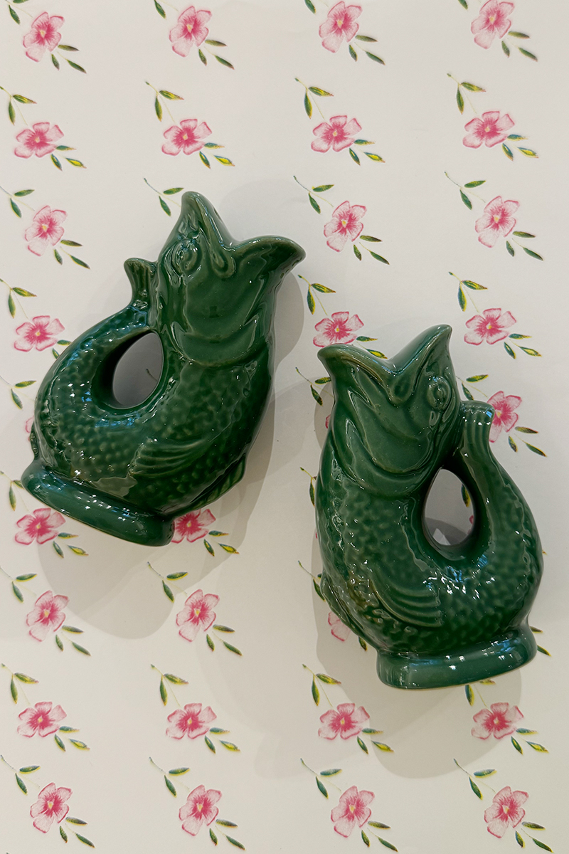 Von unten befüllbar, schmücken die zwei kleinen Fischstreuer, neben den grossen, glucksenden Krügen, jede gedeckte Tafel vorzüglich.